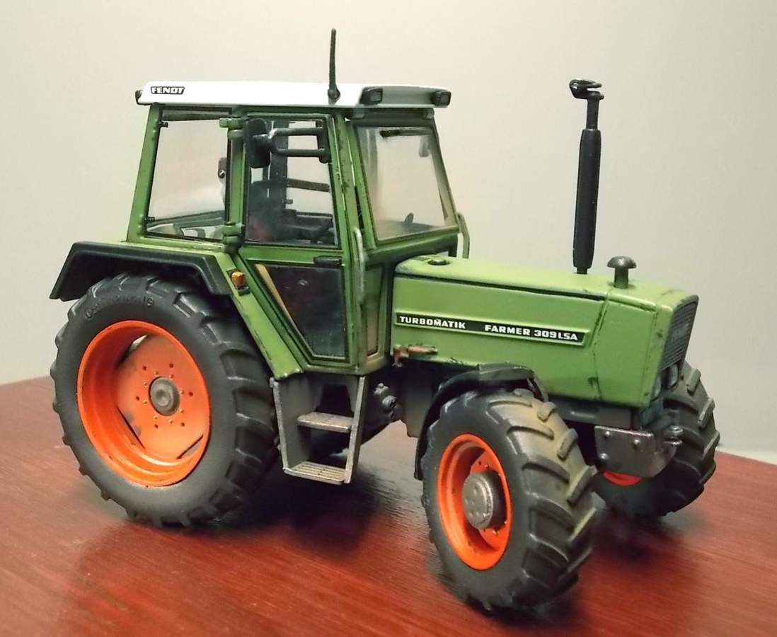 ich möchte Euch hier meinen "Umbau" eines fabrikneuen Fendt 309 LSA von Weise Toys zu einem Traktor mit typischen Gebrauchsspuren vorstellen. Hier im Kreis Pinneberg - einem sehr großen Baumschulgebiet - scheint der Fendt-Vertrieb sehr erfolgreich zu sein. Und der 309er ist quasi das Arbeitstier, das einem vergleichsweise häufig begegnet.