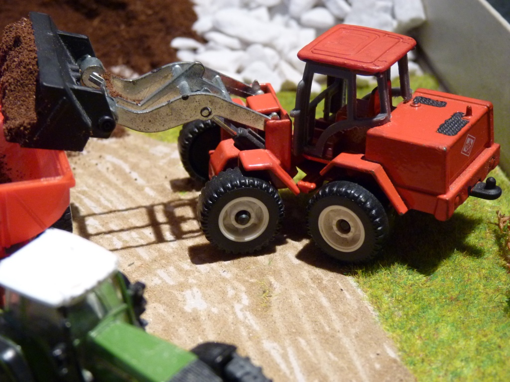 Darunter befand sich auch ein Radlader von O&K. Der Hersteller ließ sich aufgrund der Modellunterseite auf siku festlegen, beim Maßstab bin ich mir jedoch nicht sicher, ob es sich nicht um etwas anderes als 1:87 handelt. Hinweise werden gern entgegen genommen.