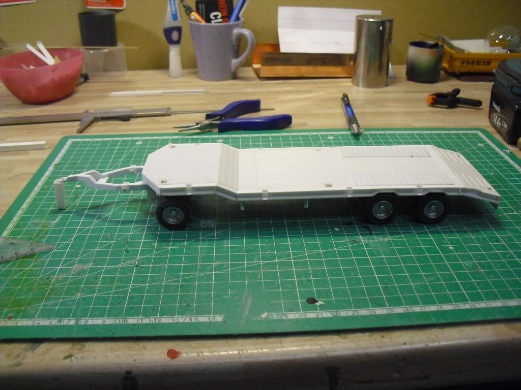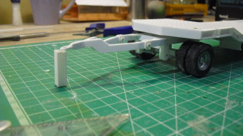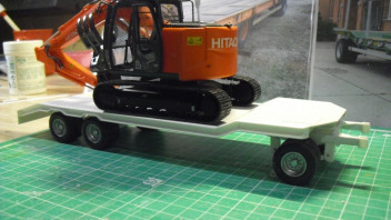 Ich habe weiter am Tieflader gebaut. Die Rampen gebaut,und ein paar Leitungen am Unterboden verlegt.