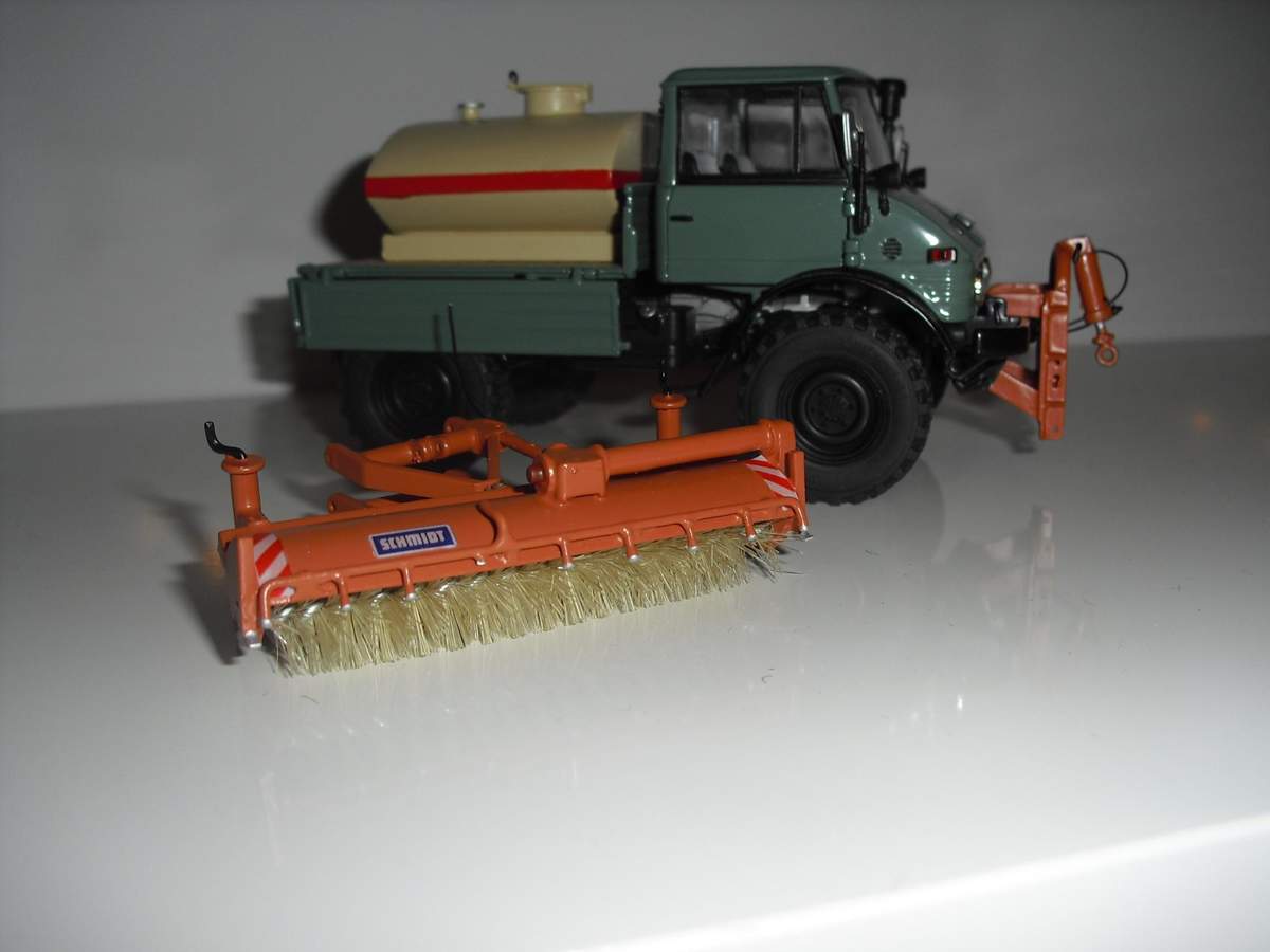 Ich habe eine Kehrmaschine und eine Wassertank mit einer Hochdruckpumpe für meinen Unimog 406 gebaut.