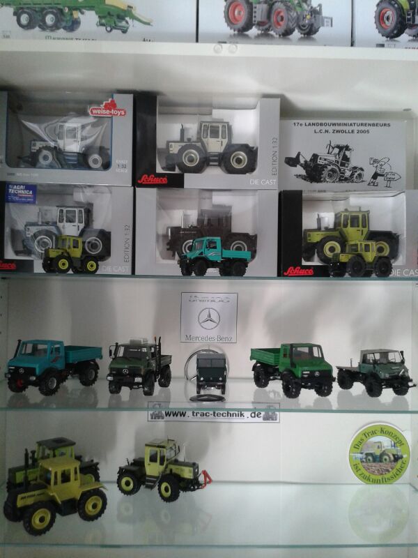 wie Ihr gleich sehen werdet bin ich in 1:1 und in 1:32 ein großer Trac Fan. Ich sammel grundsätzlich Modelle von Herstellern die wir auch in der 1:1 Landwirtschaft im Einsatz haben also MB trac, Unimog, Deutz und Case IH. Schlüter, JCB und Xerion sind ja ebenfalls Trac's und passen somit sehr gut in meine Sammlung. Einige Modelle hab ich selber umgebaut , einige aber auch schon umgebaut gekauft. Leider steht bei mir ein Umzug an so dass ich von den Bildern (Qualität....) und den Modellen nicht ganz auf dem aktuellen Stand bin. Freu mich auf eure Kommentare.