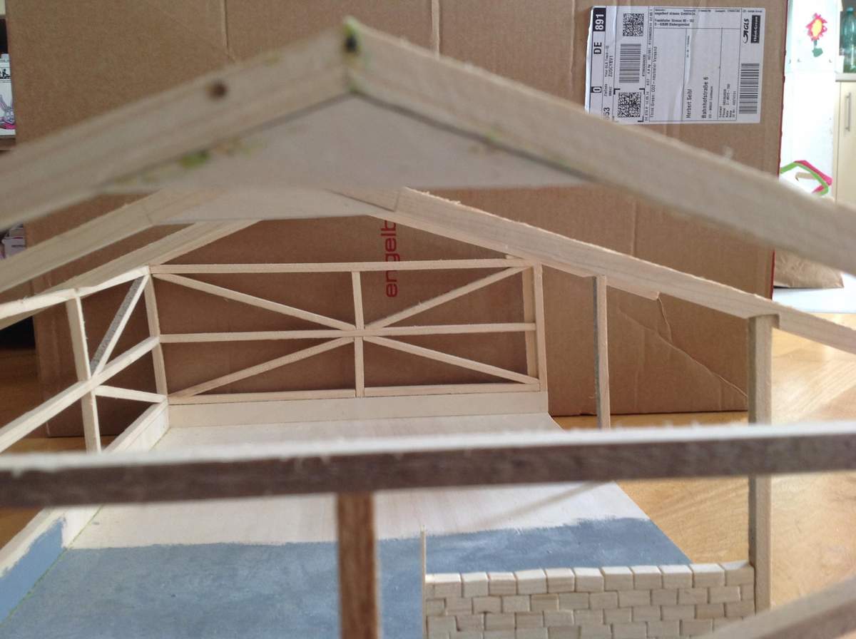 rechts fahrzeughalle , links Werkstatt (deshalb (originalgetreue)Mauer dazwischen) Dachboden über der werktstatt folgt noch...