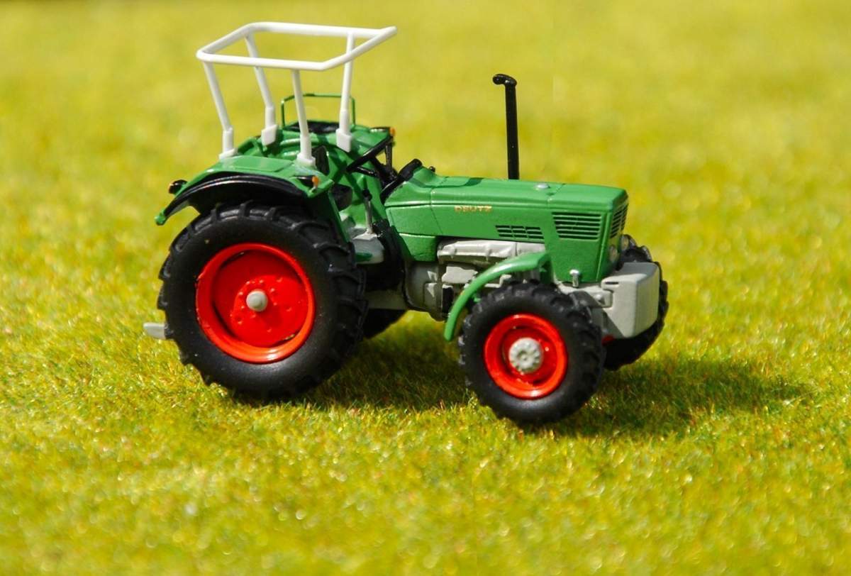 ...im Prinzip hast du Recht, wenngleich es auch Ausführungen mit einer Abgasführung nach unten weg, also am Rahmen entlang bis zum Schlepperheck gab...und auch mit seitlichem Auspuff, allerdings OHNE seitlich verlaufenden Auspufftopf. Bei uns lief allerdings ein D6006 mit nachgerüstetem seitlichen Auspufftopf und entsprechend modifizierter Haube, welchen ich als Vorbild genommen habe.