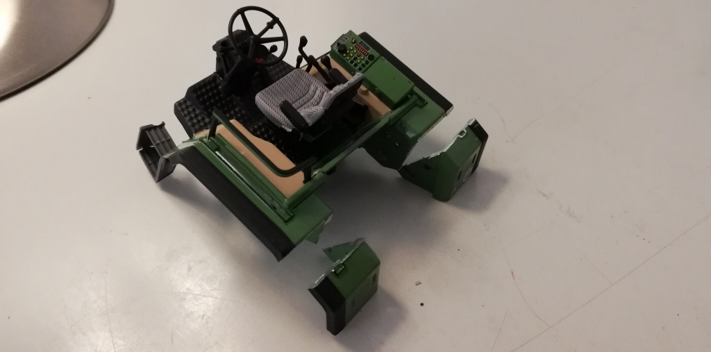 Bei einem habe ich an der hinteren Kante gesägt und bei dem anderen direkt an der Kabine und somit langt die Kotflügel Länge genau aus wie sie auch beim Original ist.