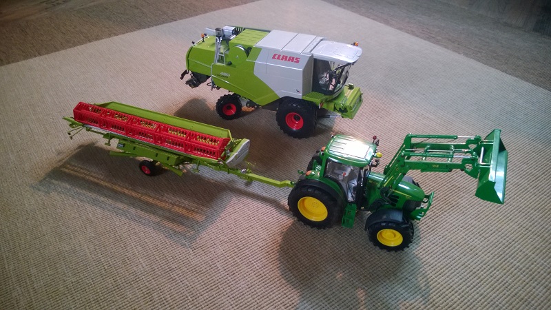 Den Anfang macht der Lexion 780 TT (Wiking), den ich vor knapp einem Jahr im Claas-Werk in Harsewinkel erstanden hab. Dazu der Fliegl ASW 288 (ebenfalls Wiking) und mein bis jetzt neuestes Modell, der 2014er Valtra S von UH. Über Geschmack lässt sich zwar streiten, aber für mich ist der große Valtra aktuell der wohl schönste Schlepper auf dem Markt