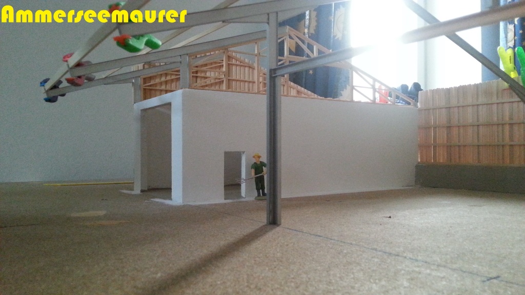 Zwischendurch habe ich den Boden und Vorplatz noch geteert und die ersten Abstandshalter(genaue Bezeichnung weiß ich grade nicht) der