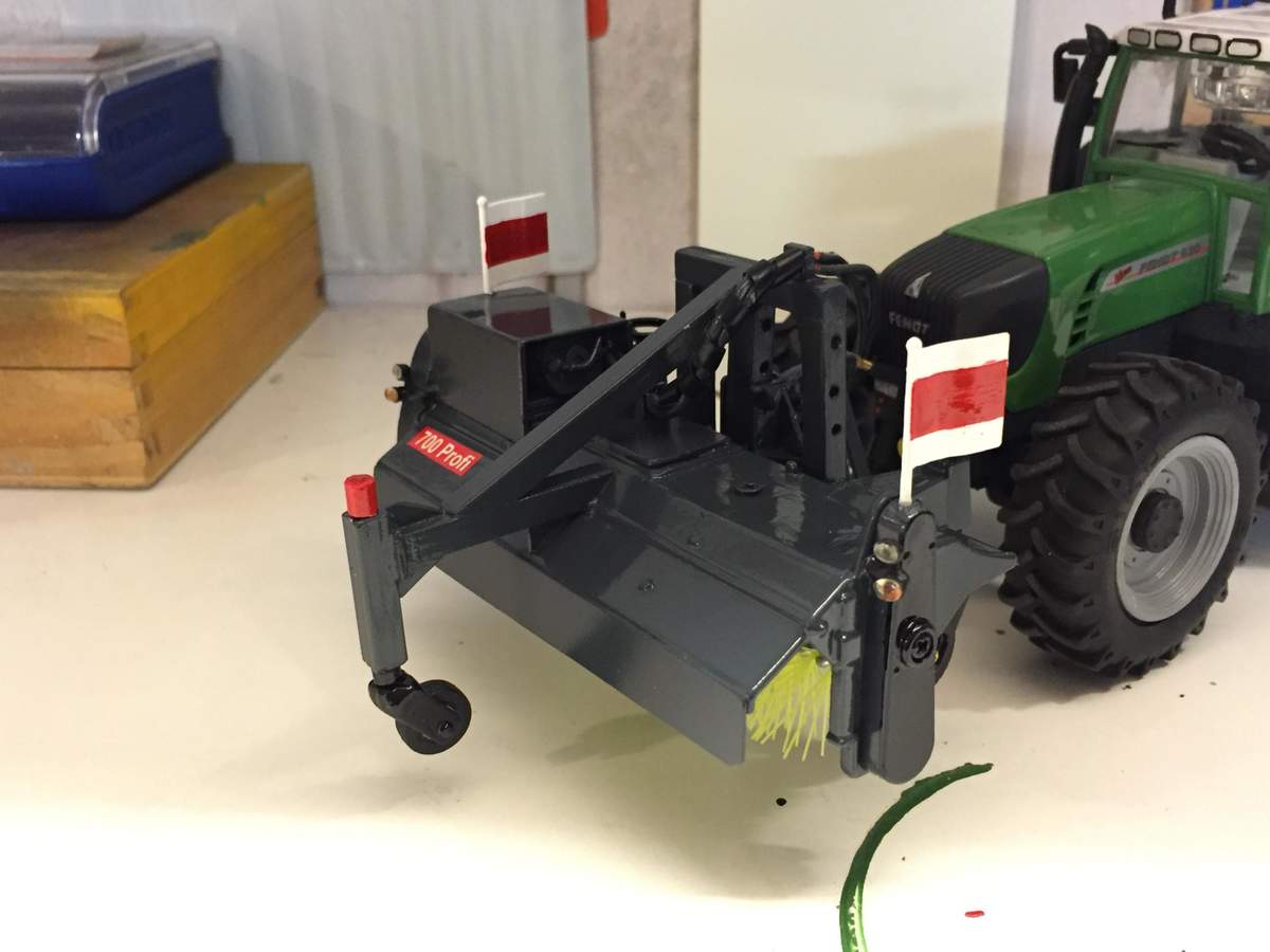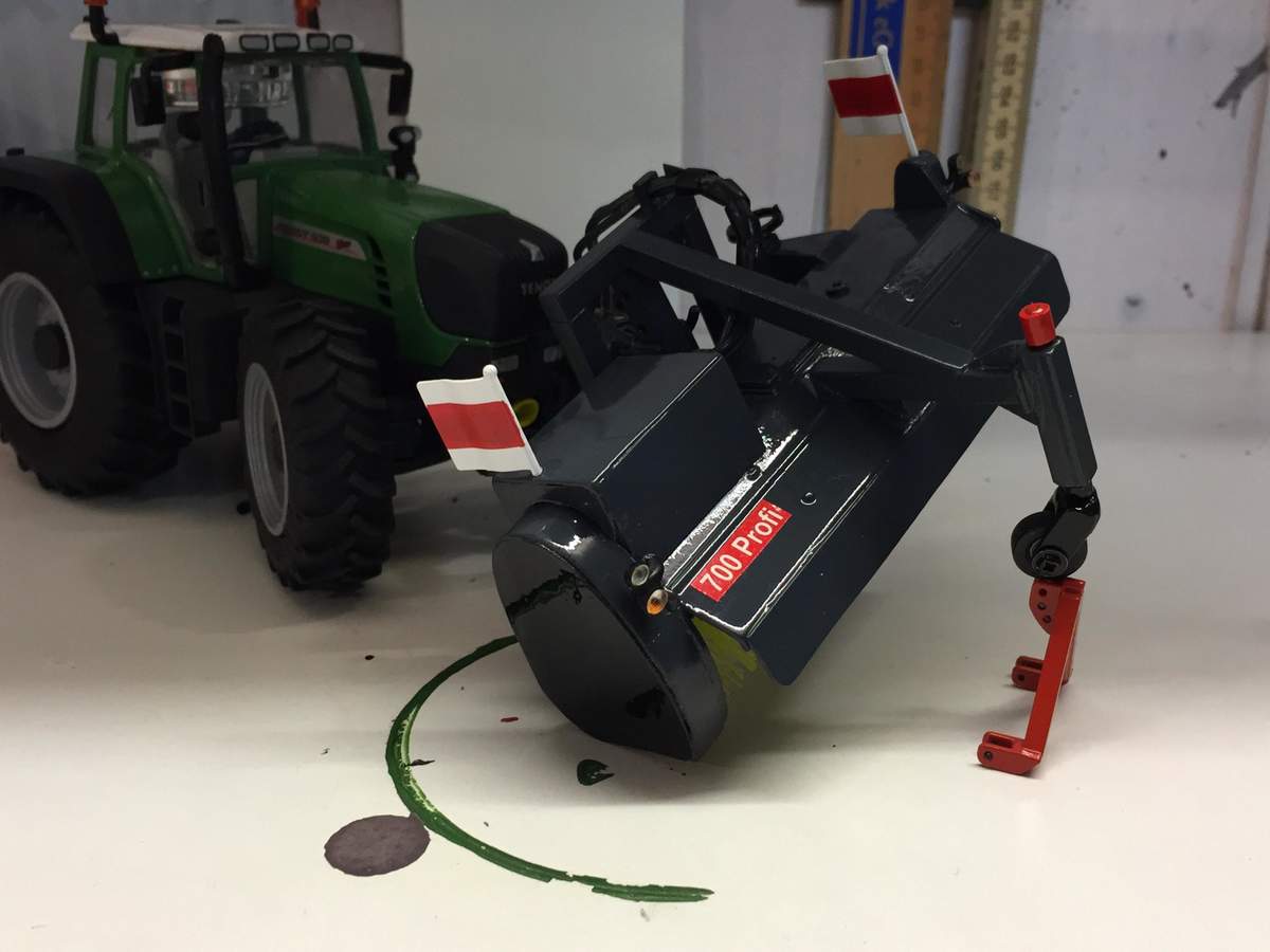 So wurde zum Beispiel ein Wiking Valtra T umlackiert.Neben dem Rahmen und Felgen auch die Haube, Kotflügel sowie Kabine im Originalton.