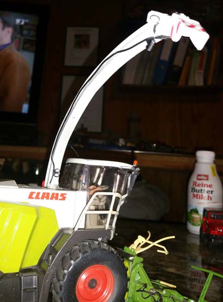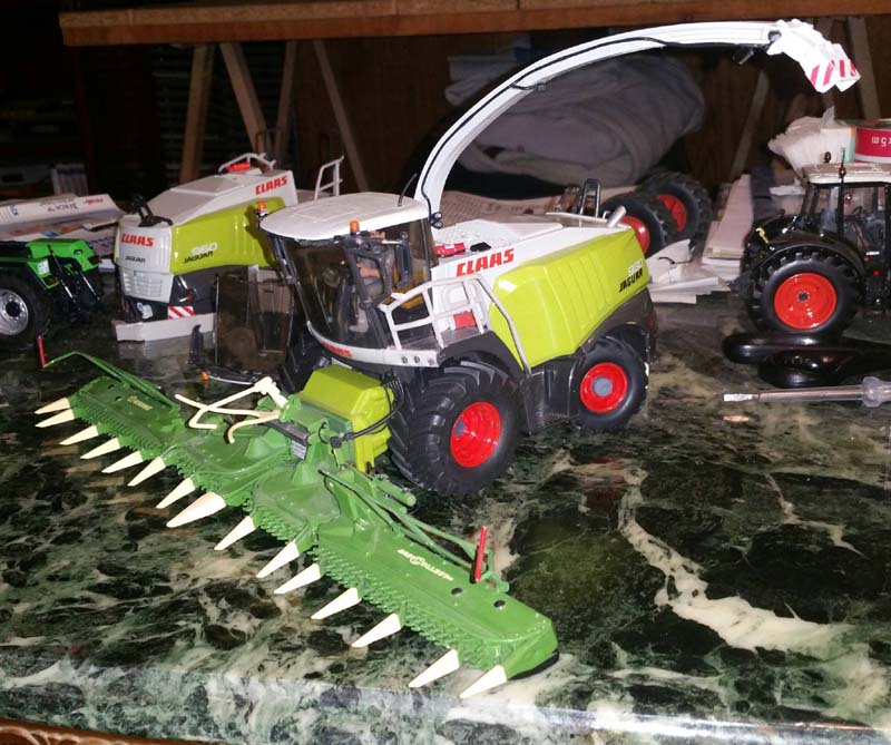 der TX 560 passt zwar in etwa, rutscht aber vom Anhängedorn der Sikukupplung herunter. Hier kann man aber etwas abhilfe schaffen, in dem man einen Adapter der Heckhydraulik nimmt, die aufnahme für Frontanbaugeräte absägt (Dremel geht da wunderbar) und eine Dünne Schraube (M2) einschraubt. Ich hab sowas für den Stoll VT202 gebastelt, weil dessen Anhängemaul für Siku zu hoch ist.