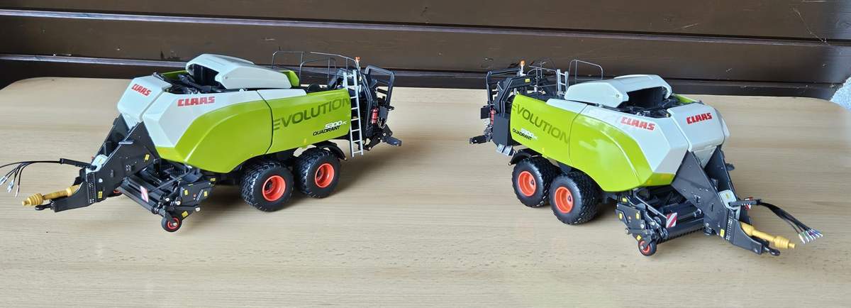 ich habe mir beide gegönnt (Case und NH), um meine beiden MM-Traktoren (Case Magnum 400 und NH T8.435) davorzuspannen (Bilder ganz oben). Die Anhängevorrichtung der Traktoren ist 1. zu hoch und 2. zu klein, um die Pressen anzuhängen. Zugpendel/Untenanhängung ist bei beiden Traktoren nicht vorhanden; d.h. selbst nachrüsten.