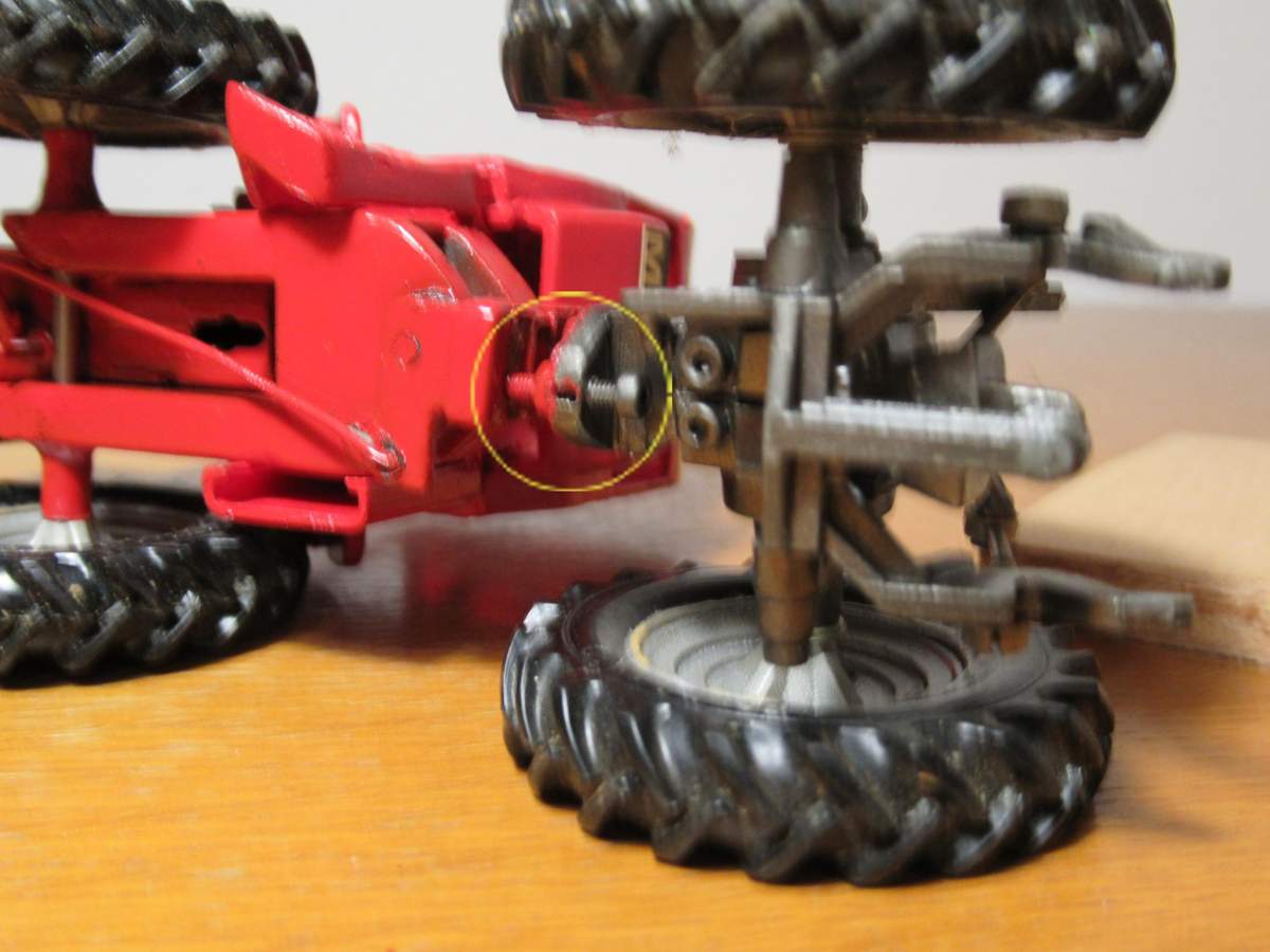 Hinten wurden nur die Kotflügel geändert so dass sie auch nach vorne abgeschrägt sind. Die Frontmaske wurde aus zwei vom Britains Ford 5000 hergestellt, die Frontgrillaufnahme ist ein Stück Alu-U-Profil entsprechender Größe.