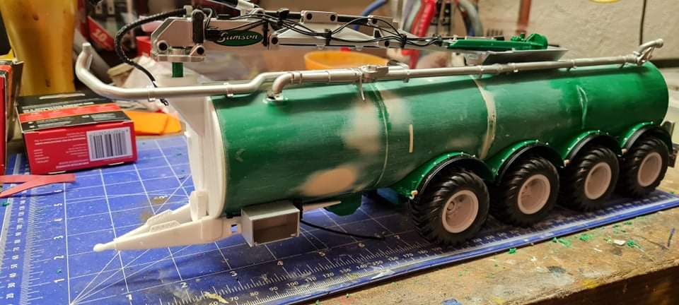 Danke freut mich wenn es euch gefällt. Ja bei den Reifen kommen definitiv größere drauf. Als Verteiler kommt jetzt erstmal dass Gestänge von dem ROS Samson Fass dran, bis ich was anderes gefunden habe. Als Schlepper kommt ein Fendt 942 dran.