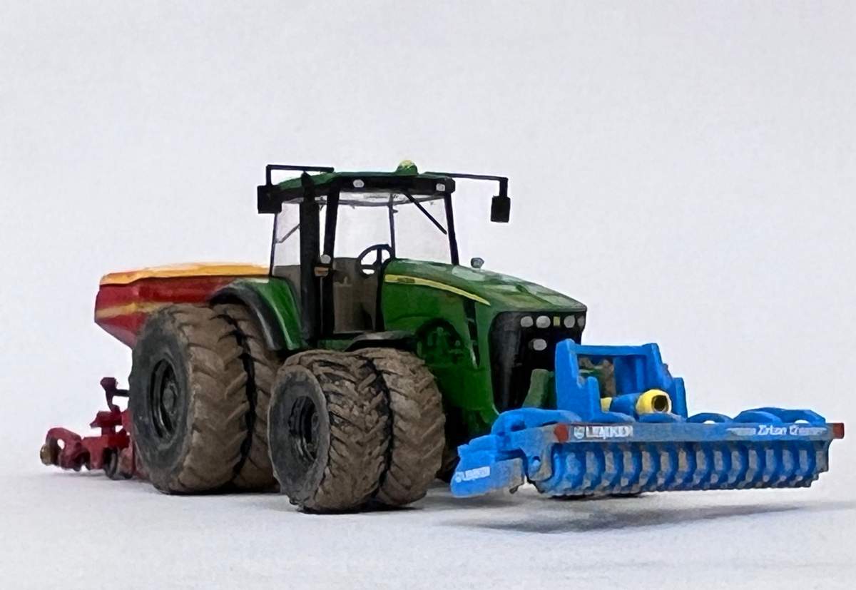 I will try and replicate this real John Deere with light pack, air drill pipes for vining peas and warning signs.