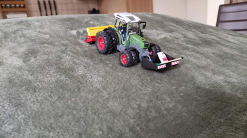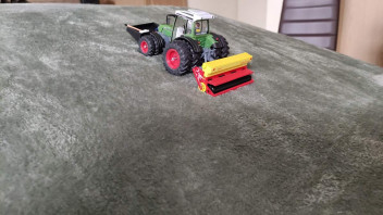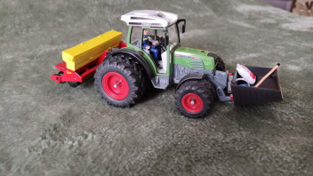 Auf der Agritechnica gab es ja einen 200er Fendt mit Zwillingsbereifung und das Vredo Nachsaatgerät. So ein Gespann läuft bei mir schon seit Jahren. Der 200er Fendt hat durch sein geringes Eigengewicht und mit den Zwillingsreifen auch eine gute Standsicherheit im hügeligen/alpinen Raum. Bei den Zwillingsreifen habe ich die Trinker-Version dargestellt.