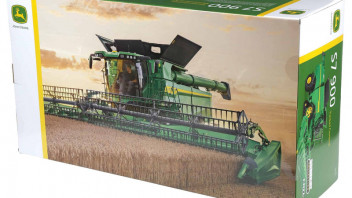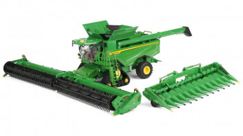 John Deere S7 900 Mähdrescher mit 13,7m Schneidwerk und 9m Maispflücker.