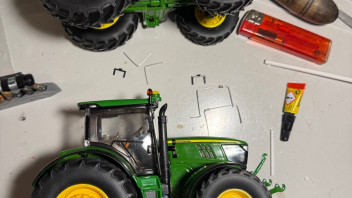 Am 6R250 kann die Montage jetzt auch starten. Der 6210R muss bevor ich die RDA montiere vorne noch die Felgen lackiert bekommen. Hinten habe ich das schon gemacht. Da mir das Ergebnis gefällt, werden die vorne auch noch lackiert. Die Radgewichte brauchen eh noch eine Schicht Farbe, von daher muss ich eh nochmal anfangen zu lackieren. Dann mache ich die Felgen gleich mit.